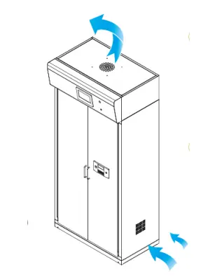 Spintelės viršuje esantis ventiliatorius pritraukia laboratorijoje esantį orą į spintelės vidų.